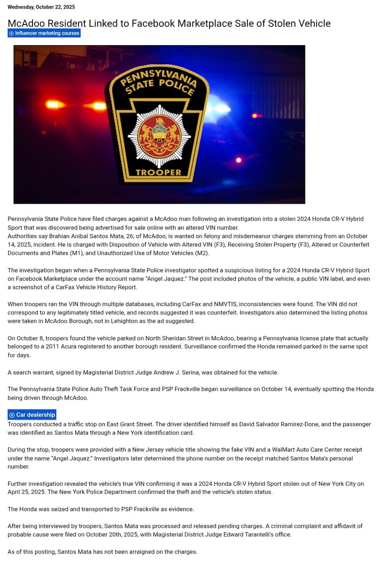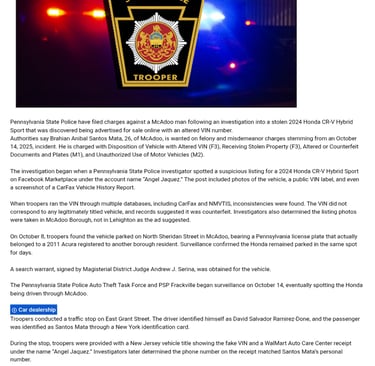 Grand Theft Auto and title forgery by Northern Keystone Towing, which works hand in hand with the PASP.