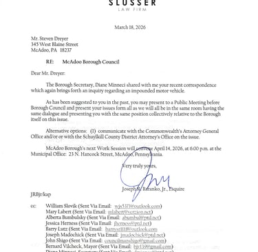 For over two years I have accused the MPD of Grand Theft Auto, among a myriad of laws broken. Here's a thought, why don't you contact the Schuylkill County DA and report your own police department. I suggested this in the past and they promoted him to Chief complete with a bonous.