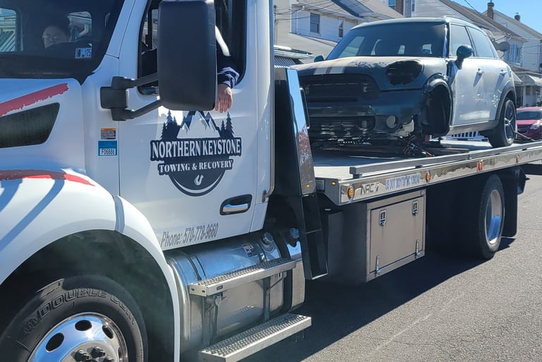 The photo above is of the flatbed operator responsible for ripping my Mini from its jack stands and relaying the theft in real time while we were still in court. I asked Northern Keystone Towing for a copy, and they refused. I also asked MPD for a copy and received no response. I filed a RTKL request but was informed that items like bodycam footage and police photos are exempt.